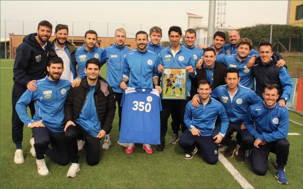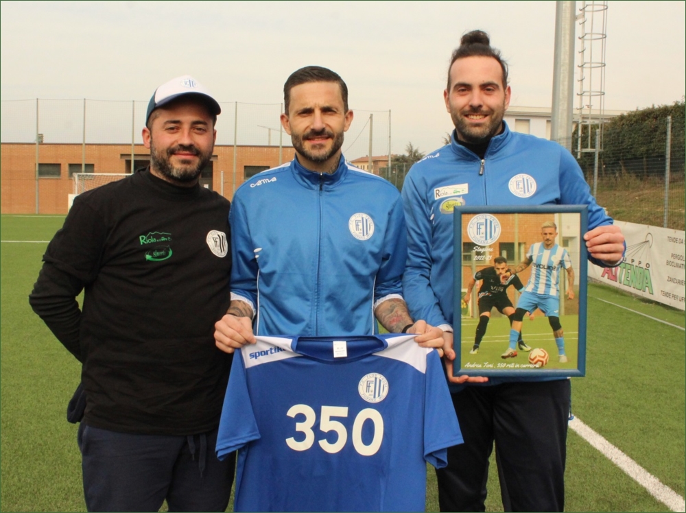 Domenica prima dell’incontro casalingo della Flos Frugi contro il Fox Junior Serramazzoni il Presidente Paroli ha premiato il suo attaccante Andrea Toni per il raggiungimento della strepitosa quota di 350 reti in carriera.